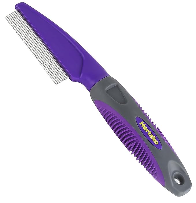 Hertzko Comb for Dogs and Cats – Closely Spaced Metal Pins Removes Debris from Your Pet’s Coat - Great for Short Hair Areas. - Long Handle for Extra Comfort!