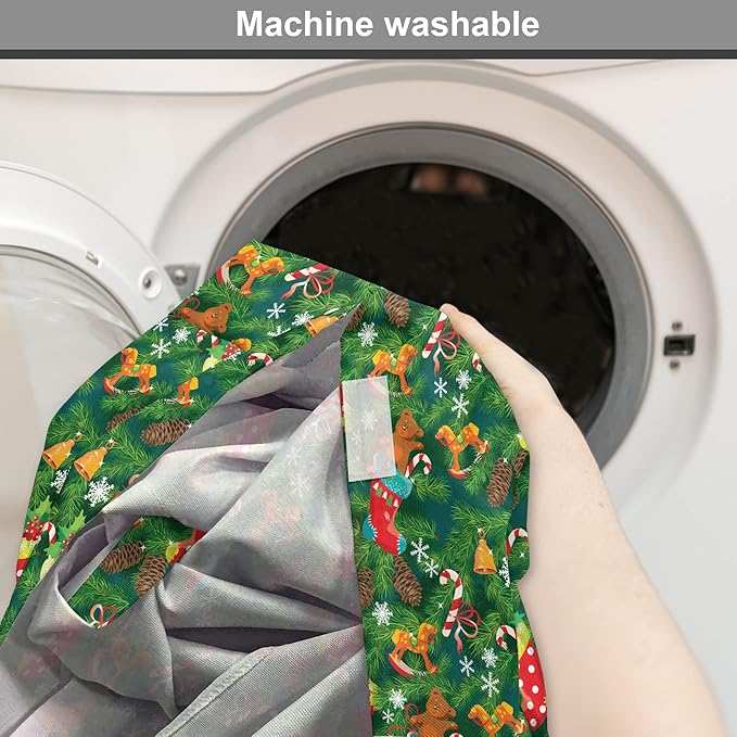 Ambesonne Christmas Dog Crate Cover, Xmas Accessories Stockings Candies Horse Teddy Bear on Pine, Easy to Use Pet Kennel Cover for Medium Large Dogs, 36 Inch, Green Brown
