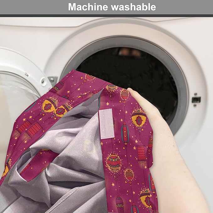 Lunarable Folkloric Dog Crate Cover, Cultural Inspirations Oriental Party Celebration Art Traditional Design, Easy to Use Pet Kennel Cover for Medium Large Dogs, 36 Inch, Magenta and Yellow