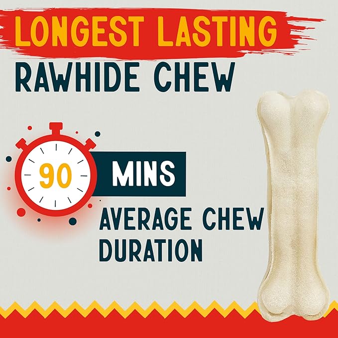 - SAVORY TASTE - Single-ingredient beef rawhide chew treat toy will keep your medium or large dog chewing this large bone chew toy and begging for more!