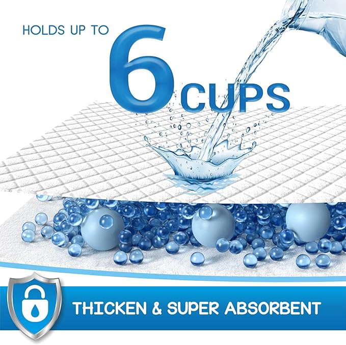 - Maximum Absorption Dog Pads: Engineered with multiple thick, absorbent layers for ultimate capacity. This advanced system rapidly pulls in moisture and traps it at the core, ensuring your floors stay completely clean and dry