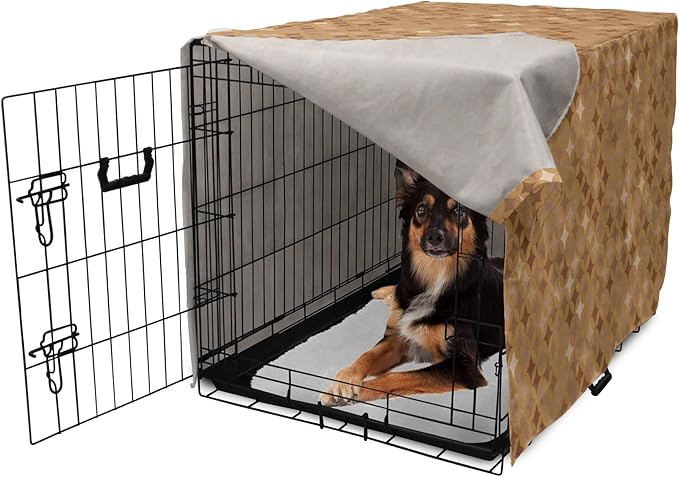 Lunarable Abstract Dog Crate Cover, Classic Print of Retro Style Round Intricate, Easy to Use Pet Kennel Cover for Medium Large Dogs, 36 Inch, Cocoa Pale Brown