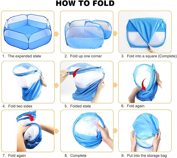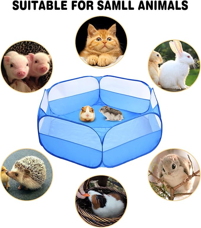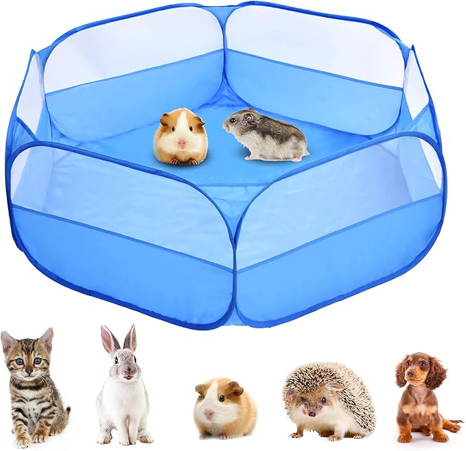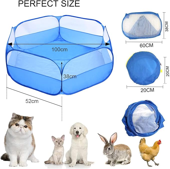 Small Animals Playpen, Breathable & Waterproof Pet Playpen Cage Tent Outdoor/Indoor Portable Fence Tent for Puppy/Kitten/Rabbits/Hamster/Chinchillas/Guinea Pig (Blue)