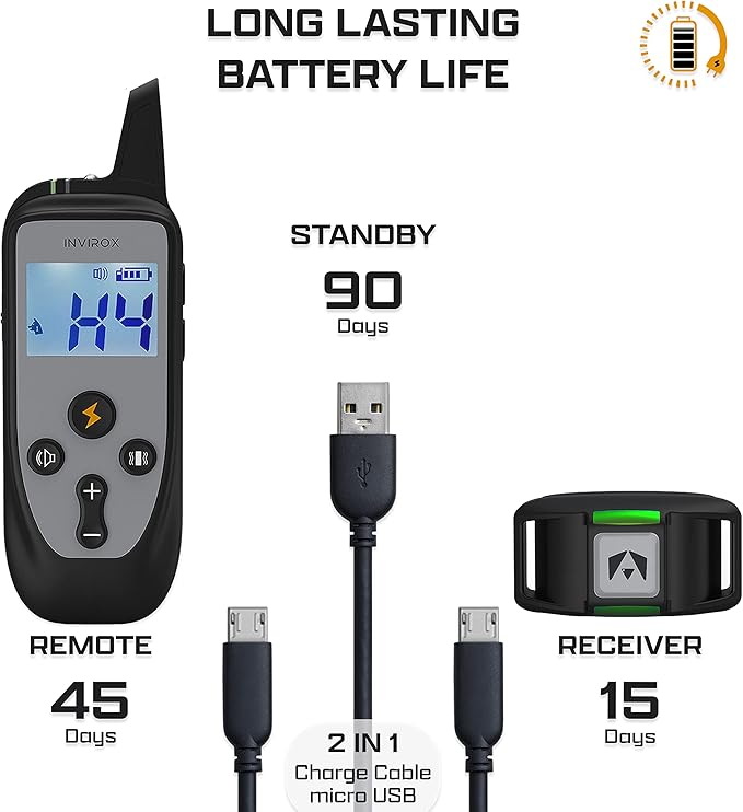 - 24/7 Customer Service & 1-Year Warranty: Rechargeable dog training collar with remote- lasts up to 45 days & the shock collar with up to 15 days operation per single charge
