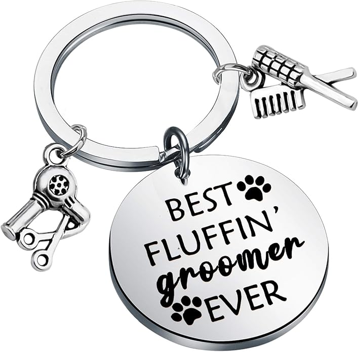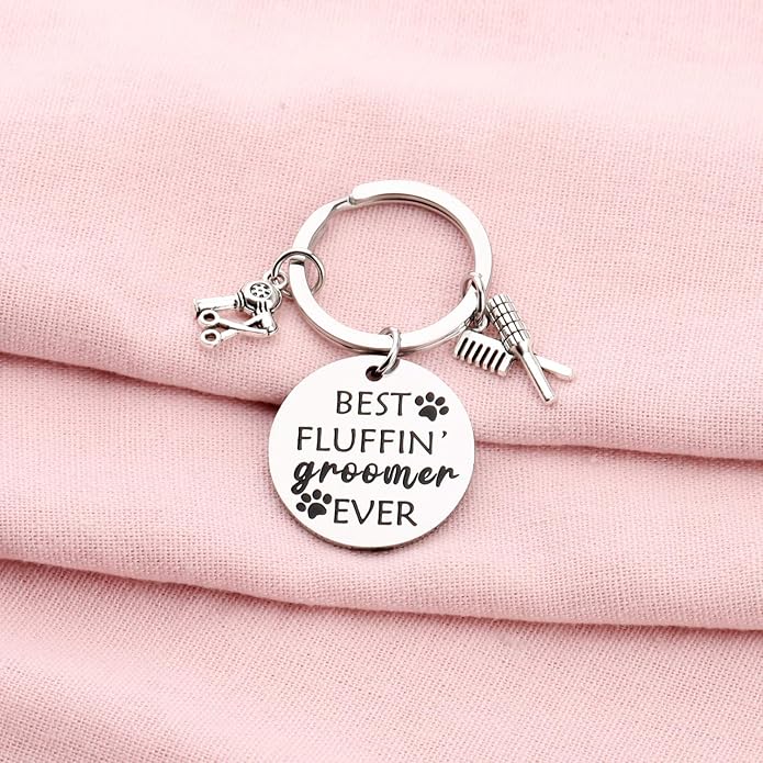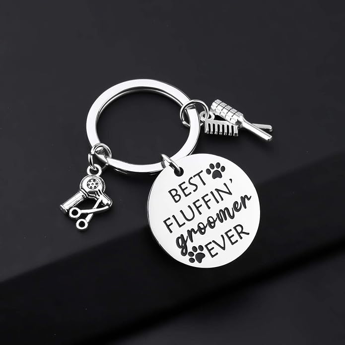 - ★Dog Groomer Jewelry★This pet groomer key chain with Hair dryer comb charm was engraved the words”Best Fluffin' Groomer Ever”,a inspired grooming gift for dog groomers.