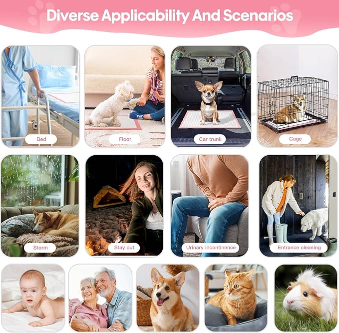 - Easy Training - White Soft Non-woven Fabric, Air Permeable Layer, Ultra Absorbent Polymer, Air Permeable Layer, Pink Widen Leak proof PE .Quick-dry surface with built-in attractant, perfect for training new dogs and making it easier on senior dogs.
