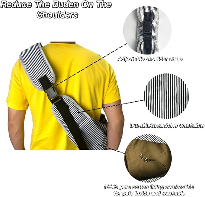 - Durable fabric: The pet sling carrier backpack is made of pure cotton fabric, which is very comfortable and easy to clean. There is soft padding inside the shoulder strap to reduce the burden on the shoulder