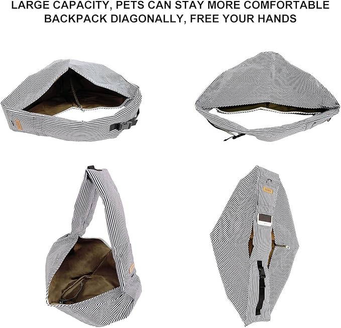 - Worry-free going out: this bag suitable 7lbs ~15lbs small puppy pets ,Our pet sling carrier adopts the diagonal backpack style design and people who are 5 '3' tall may be more suitable for this bag size,which is convenient to carry. When you bring your pet, you can also free your hands
