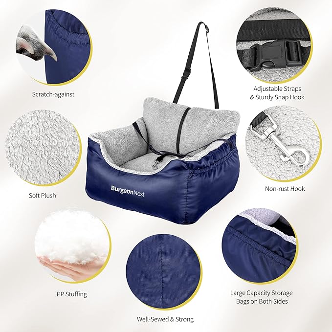 - Sturdy Oxford Fabric : BurgeonNest dog booster car seat is made of sturdy oxford fabric with thicker coating, and reinforced with double stitches, there is no more stitching tore, ripped in the washer. And dog car seat is very comfy and fluffy , good for your pet when lying on it, good for your pet's joints.