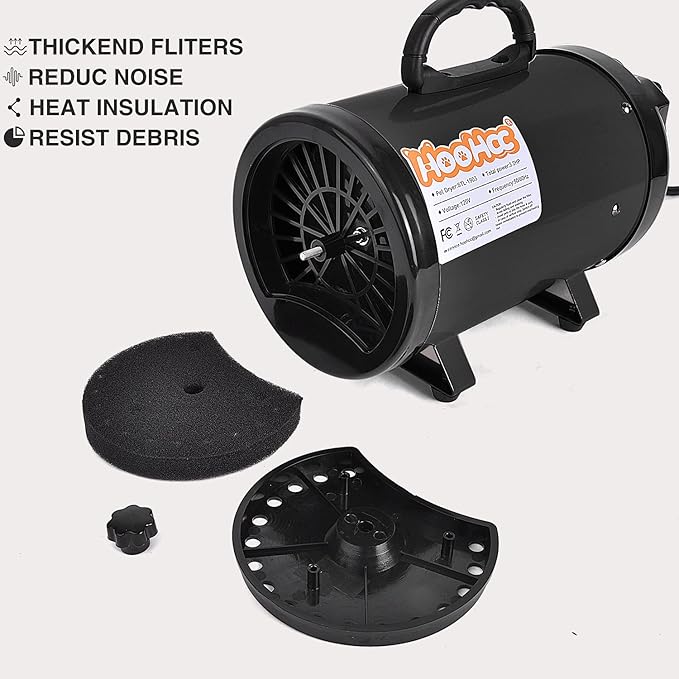 - ADJUSTABLE SPEED & POWERFUL BLOW FORCE - Our 2021 upgrade Professional high velocity dog dryer blower pet hair dryer equipped with a powerful and stable motor. Output power: 600W-2400W. Stepless Adjustable Speed. Whether it's a giant dog or mini cat, it can quickly dry. You can choose different wind level with your pet size. Give your lovely pet a thorough dry after shower