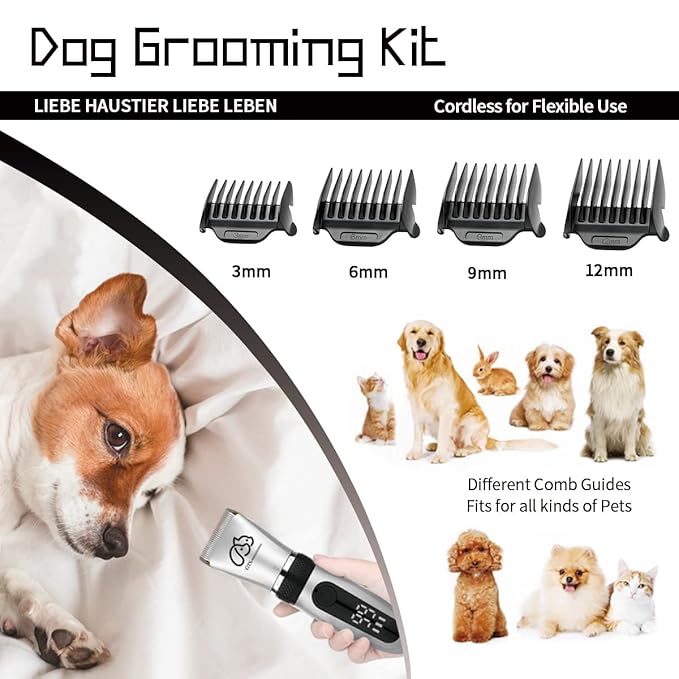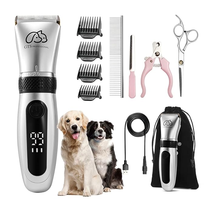 GTS Pet Clippers Professional Dog Grooming kit Adjustable Low Noise High Power Rechargeable Cordless Pet Grooming Tools, Hair Trimmers for Dogs and Cats, Washable(IPX5, with LED Display.