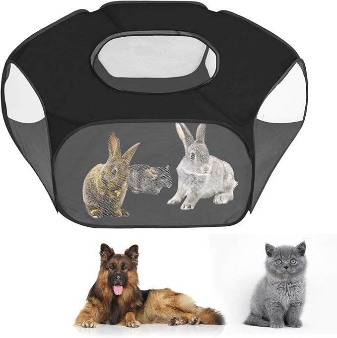 Portable Pet Tent Small Animal Pet Playpen Breathable Transparent Pet Tent with Zipper Top Cover Indoor Outdoor Foldable Cage Exercise Yard Fence for Kitten Puppy Guinea Pig Small Dogs Cats