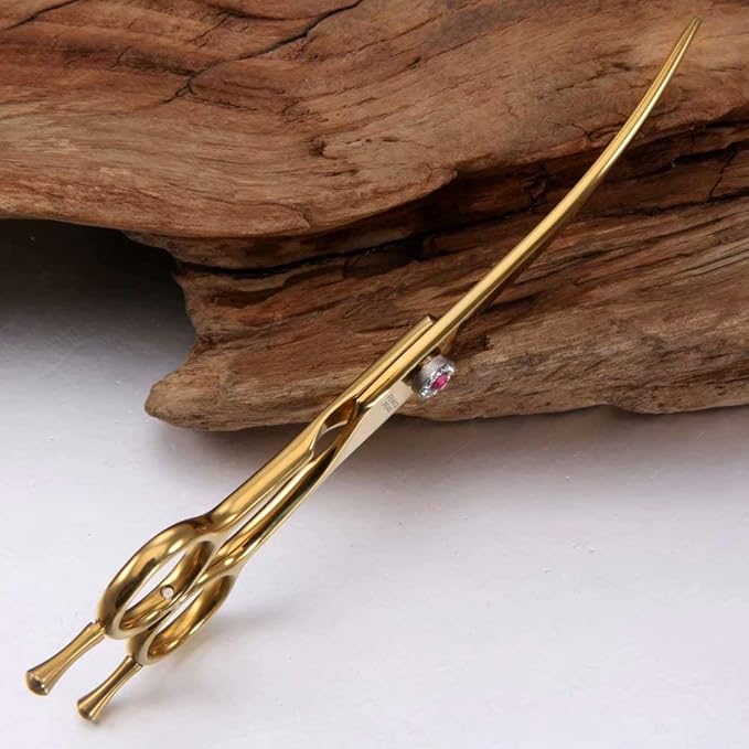 Fenice Peak Professional Dog Grooming Scissors Pet Curved Thinning Shears 7.0'' Extremely Sharp Blades 440C Steel Thinning Scissors Durable Smooth Motion & Fine Cut for Dogs and Cats(Gold)