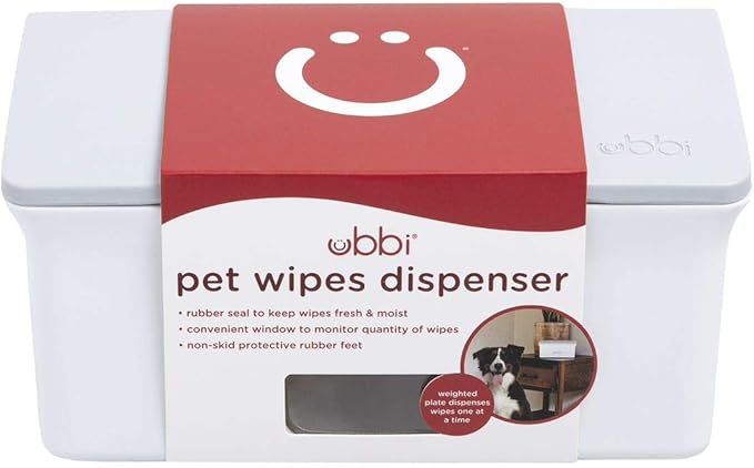 Ubbi Pet Wipes Dispenser, Grooming Wet Wipes Contianer for Dogs and Cats, Moisture Locking Wipes Dispenser, White