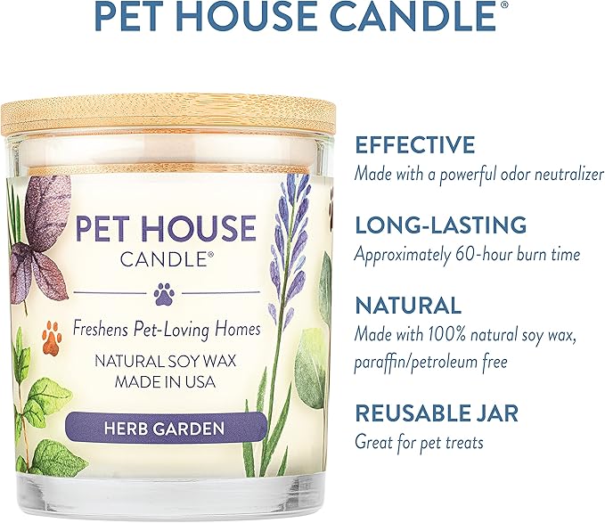 - Plant Based Soy Wax Candle: Pet house candles are made with 100% plant-based wax. Our pet candles are paraffin and dye free. These scented soy candles burn clean with a cotton wick.