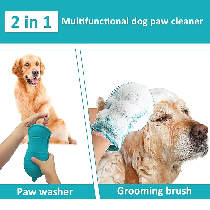 - Unique Design Paw Washer--This cleaner can be used as dog paw washer cup when the silicone bristles is inside,and it also can be used as a pet grooming brush for bathing when the silicone bristles is outside.The bristles will gently grooms and massages for a healthy coat,increasing blood circulation for your pet.
