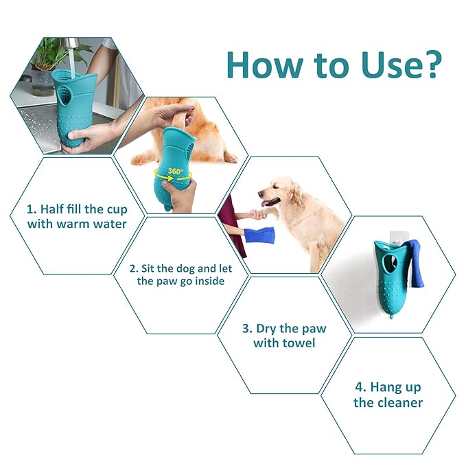 - Easy To Use--About half fill the Paw Cleaner with warm water, get the dog seated so the paws can go inside the foot washer, the soft bristles will do a pretty effective job by rotating,you can get the dirt which is hiding between the toes.