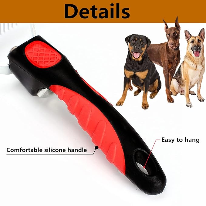 - STRONG & STURDY : This dog rake grooming comb is made of stainless steel, waterproof and oil-proof.The rubber handle, steel bracket and a strong screw connection between the comb head, not easy to fall off and strong and durable.