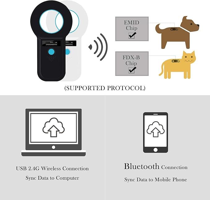 - 【Purchase Notes】- Please confirm the compatibility of this product before purchasing. This microchip scanner only supports FDX-B/EMID microchips. It cannot recognize microchips in other formats. For example: it cannot recognize AVID microchips.