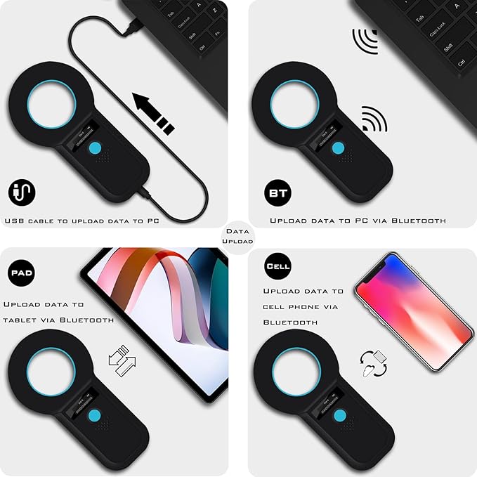Smoostart Bluetooth Microchip Scanner, 1000 Records Increased Huge Data Storage Upload to PC & Mobile Phone, Scanning Distance and Speed Increase, Compatible with FDX-B/EMID Microchips