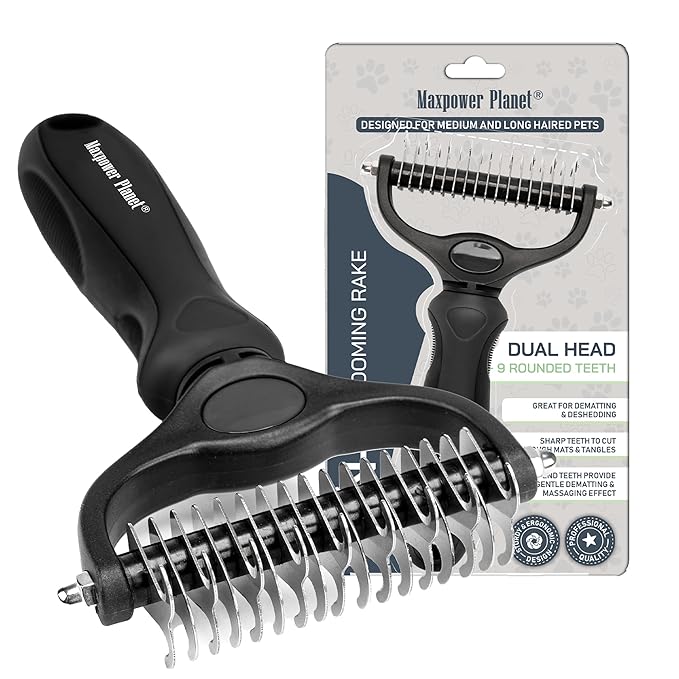 - EFFECTIVE DESHEDDING TOOL: Our dematting and deshedding tool gently removes loose hair and eliminates tangles, knots, dander, and trapped dirt. The perfect cat brush or dog grooming brush solution for pets with thick fur or dense double coats.