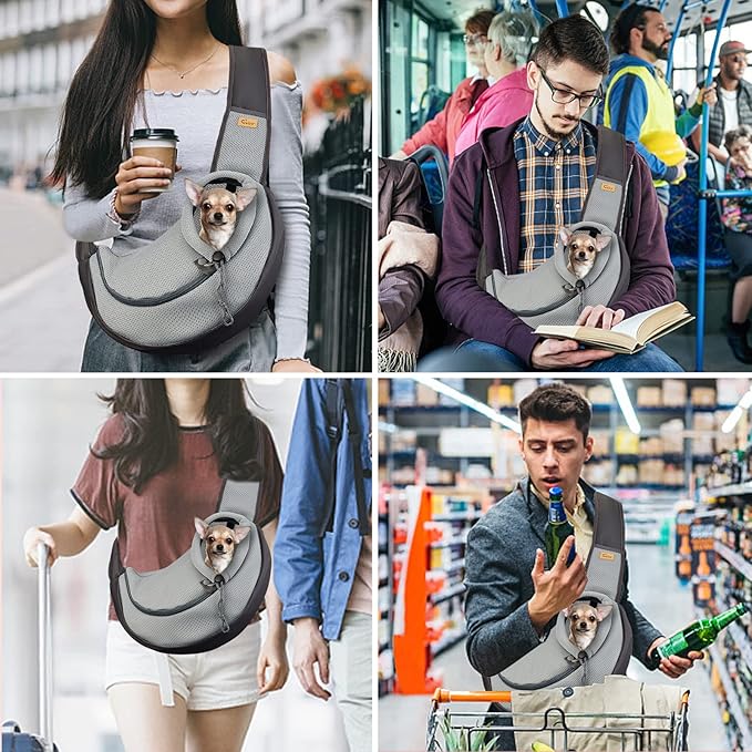 Cuby Pet Dog Sling Carrier for Small Dogs Cats,Drawstring & Zipper & Special Security Hook Triple Designs for Pets' Securty,Breathable Mesh Travel Dog Carrier Slings with Adjustable Strap (L, Grey)