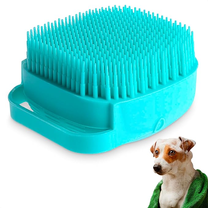 Silicone Pet Hair Brush and Shampoo Dispenser - Dog and Cat Bath Scrubber with Soap Dispenser for Indoor Pets