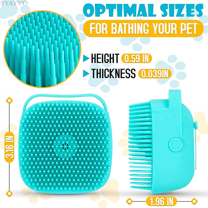 - Size of Silicone Shower Scrubber Brush: This pet shampoo brush has size 1.98 inch height, 3.15 inch and length is 8 inches. This cat bath brush with soap and shampoo dispenser has weight 78.6 grams. These dog bathing brush with shampoo dispenser make cat and dog bathing time more relaxing and enjoyable.