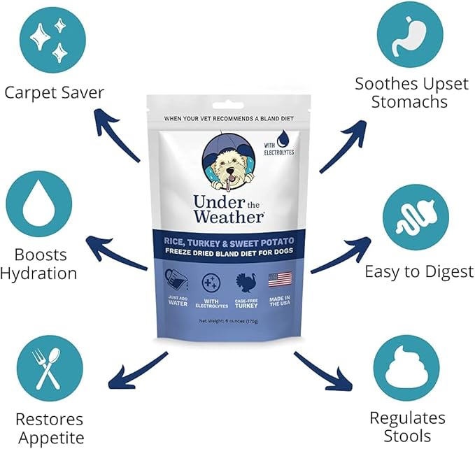 Under the Weather Bland Diet for Dogs | Easy to Digest for Sick Dogs |Always Be Ready| Contains Electrolytes - All Natural Freeze Dried 100% Human Grade Meats| 2 Pack- Rice Turkey & Sweet Potato - 6oz