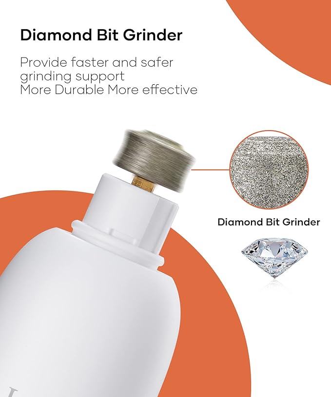 - Convertible, Diamond Bit Grinding Head: A durable, premium carborundum grinding wheel with three-port options, effectively supports a wide variety of dogs and cats with varying claw lengths and thickness.