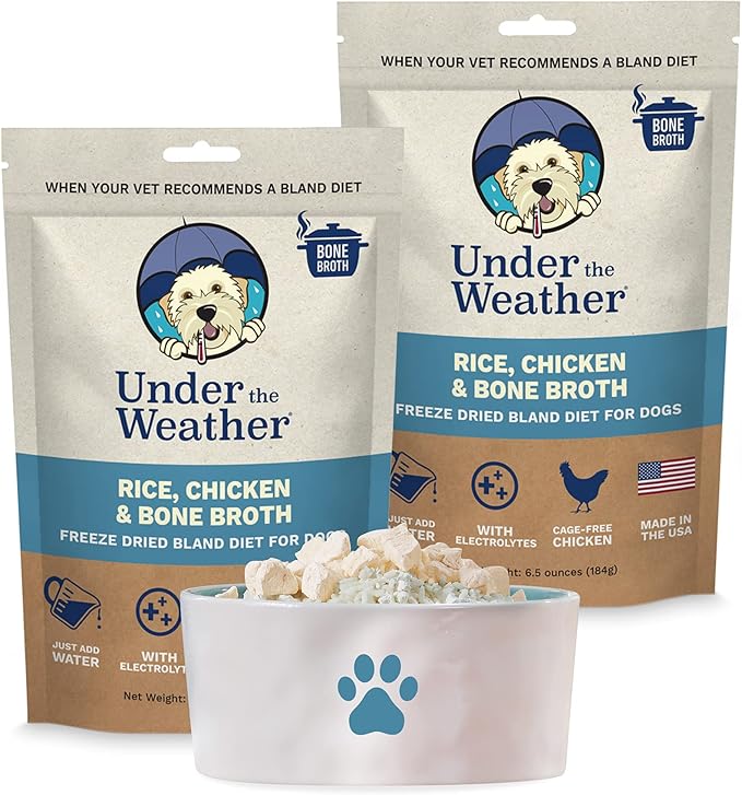 Under the Weather Bland Diet for Dogs | Easy to Digest for Sick Dogs |Always Be Ready| Contains Electrolytes - All Natural Freeze Dried 100% Human Grade Meats| 2 Pack- Chicken, Rice & Bone Broth - 6oz