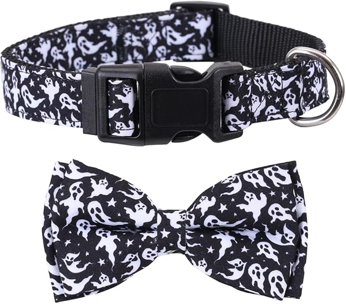 Halloween Dog Collar with Removable Cute Bow Tie Adjustable Pet Collars Medium