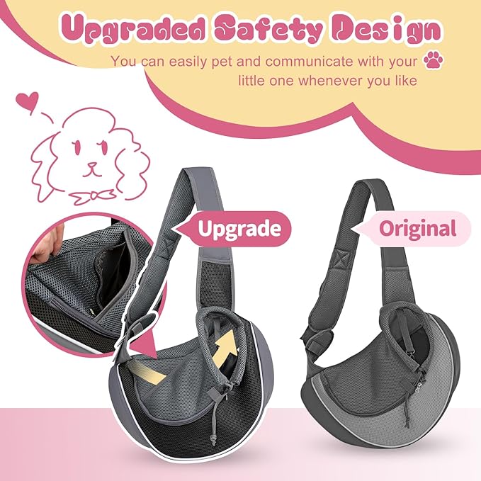 - Multifunctional Pocket Upgrade: The YUDODO pet sling carrier has a zipper pocket opening, you can touch your pet, and give your pet a feeling of comfort and safety. At the same time, we can use this pocket to adjust the pet's arms and legs and body sitting posture, which can make you and the pet more comfortable and safe.