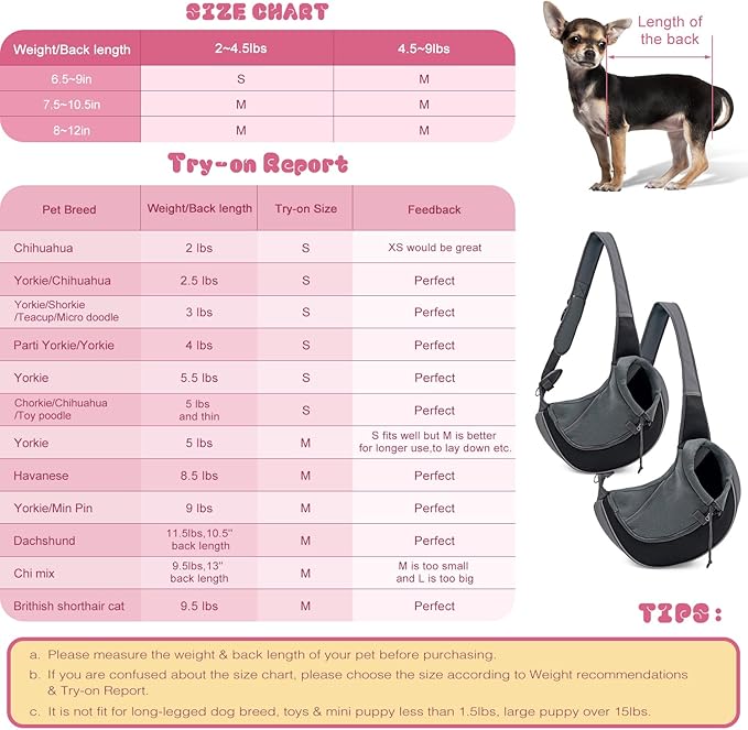 - Sizes and Descriptions: Please measure your pet's weight and size before purchasing. Please refer to our second picture (MEASUREMENT METHOD & SIZE CHART).