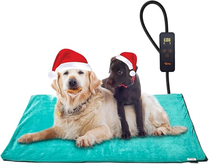 Toozey Pet Heating Pad, 6 Adjustable Temperature Dog Cat Heating Pad with Timer, Indoor Pet Heating Pads for Cats Dogs with Chew Resistant Cord, Electric Pads for Dogs Cats, Pet Heated Mat