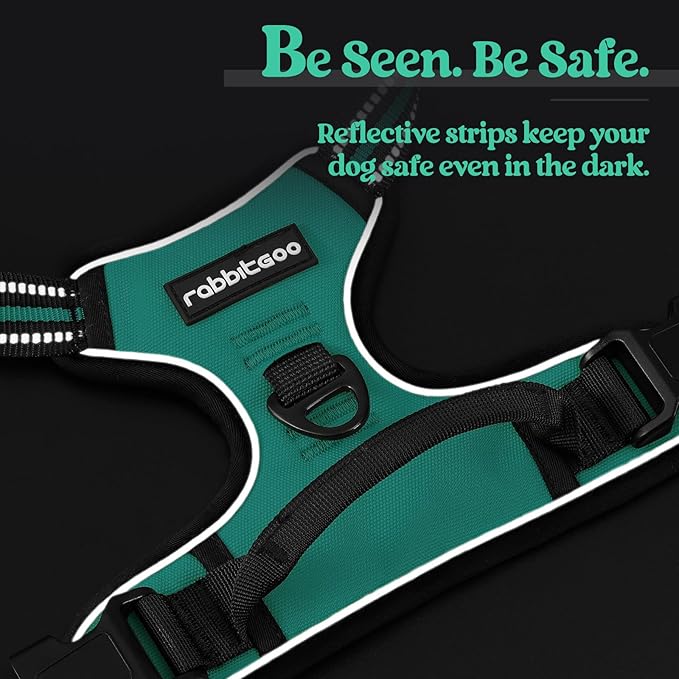rabbitgoo Dog Harness No Pull with 2 Leash Clips, Adjustable Soft Padded, Reflective Oxford No Choke Pet Vest with Easy Control Handle for Large Dogs, Turquoise, L