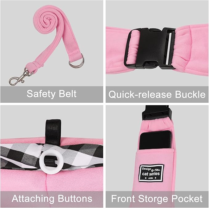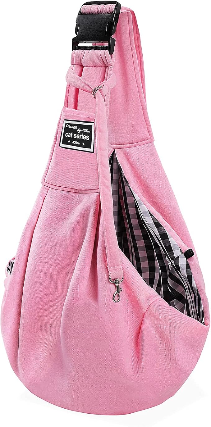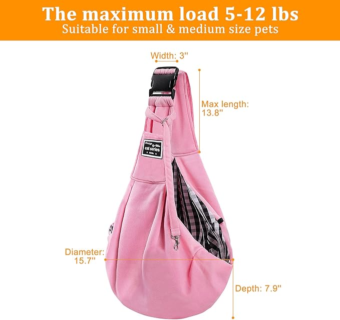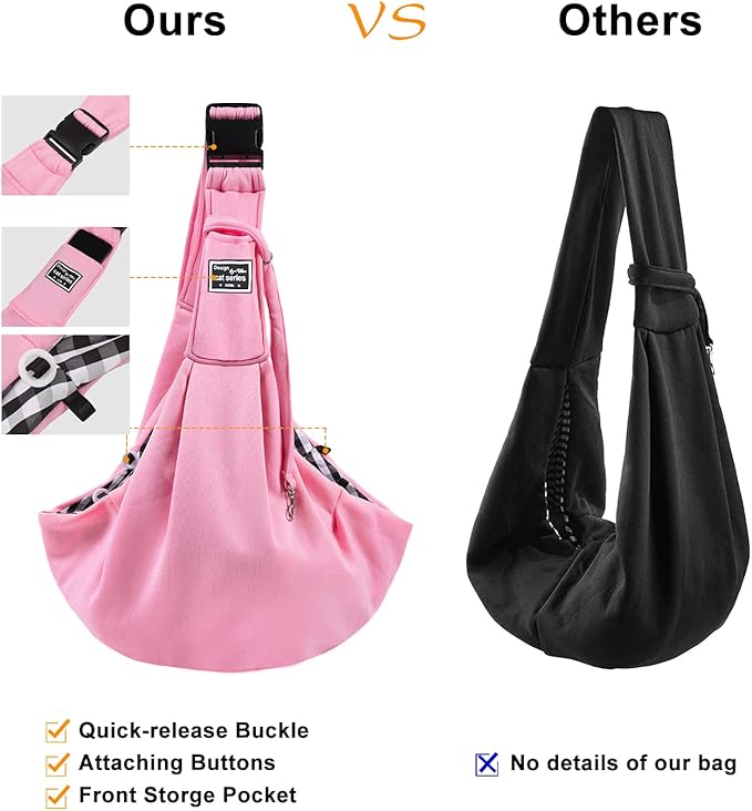 Surblue Dog Sling Carrier Bag with Hands Free Reversible Belts,Safe Comfortable Adjustable Crossbody Shoulder Outdoor Travel Pet Tote Suitable for Small Pet Cat Puppy up to 12 lb (New) (Buckle Pink)