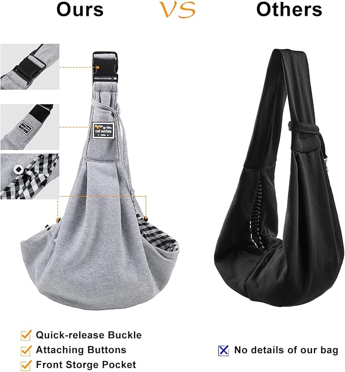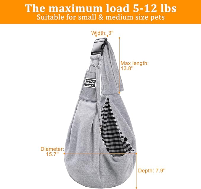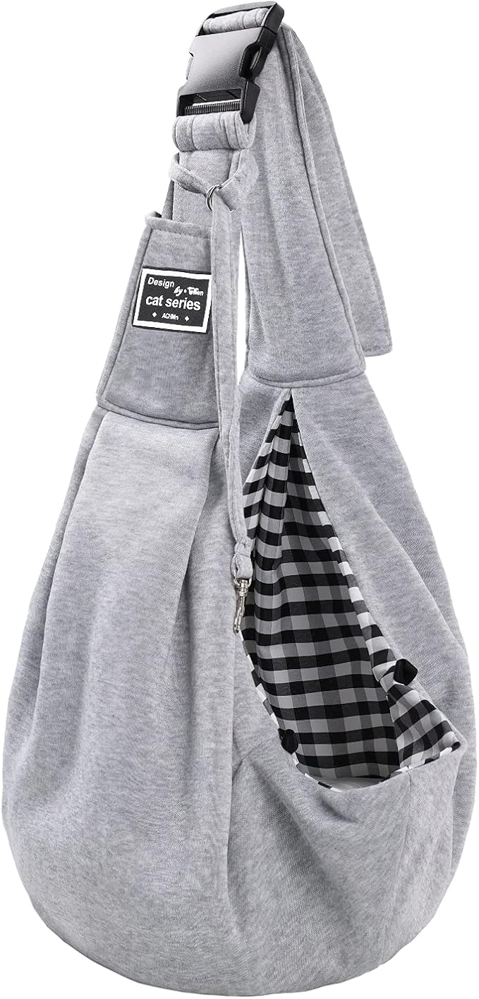 Surblue Dog Sling Carrier Bag with Hands Free Reversible Belts,Safe Comfortable Adjustable Crossbody Shoulder Outdoor Travel Pet Tote Suitable for Small Pet Cat Puppy up to 12 lb (New) (Buckle Grey)