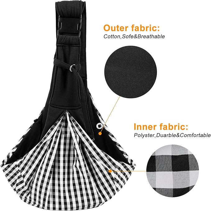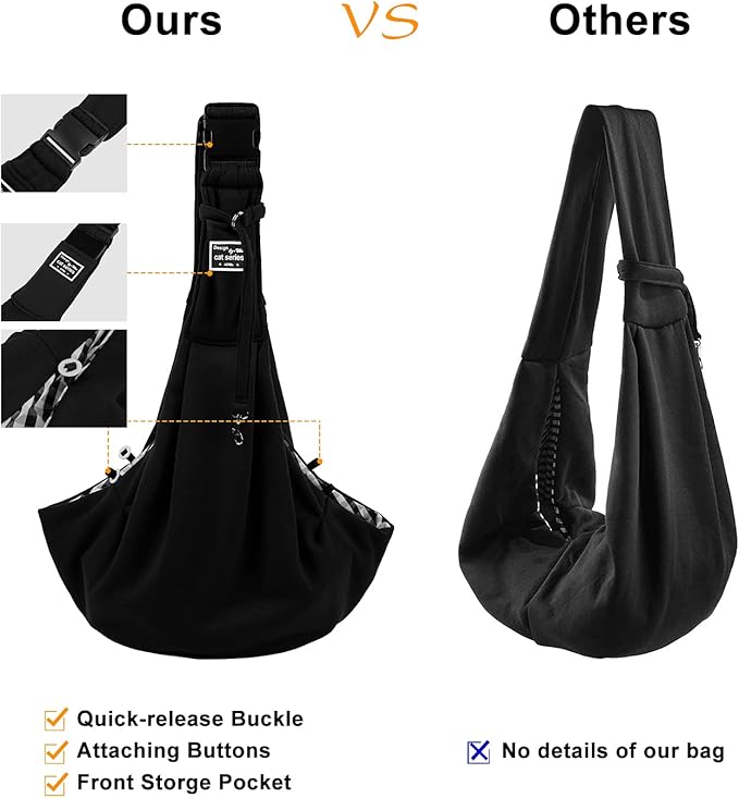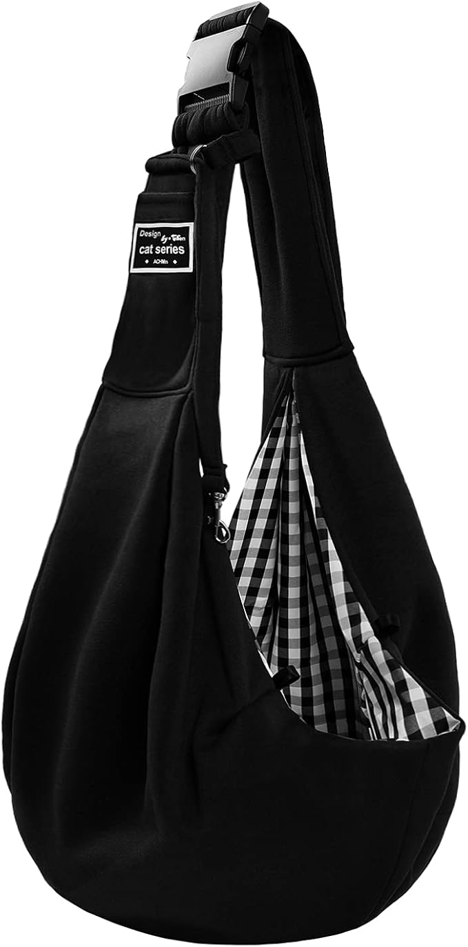 Surblue Dog Sling Carrier Bag with Hands Free Reversible Belts,Safe Comfortable Adjustable Crossbody Shoulder Outdoor Travel Pet Tote Suitable for Small Pet Cat Puppy up to 12 lb (New) (Buckle Black)
