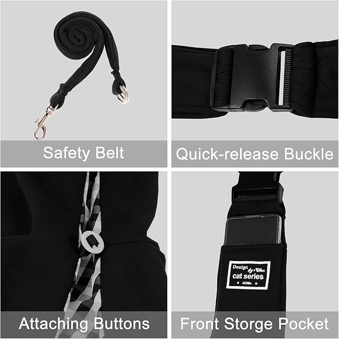 - Quick-release Buckle: There is a POM buckle similar to a seat belt buckle,bag’s shoulder strap can be adjusted freely and prevent the pet from jumping out through the external safety buckle, which can protect you and your dog under any circumstances.