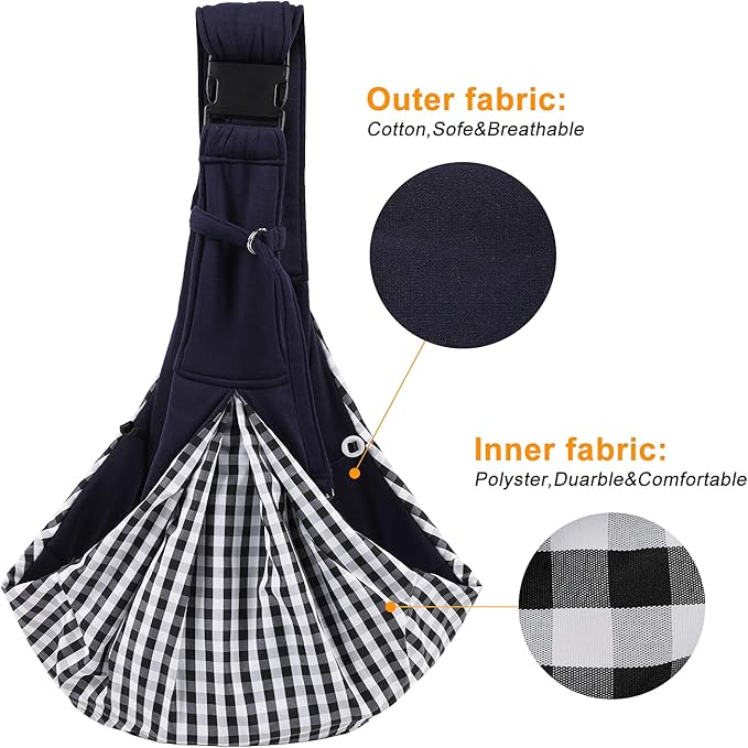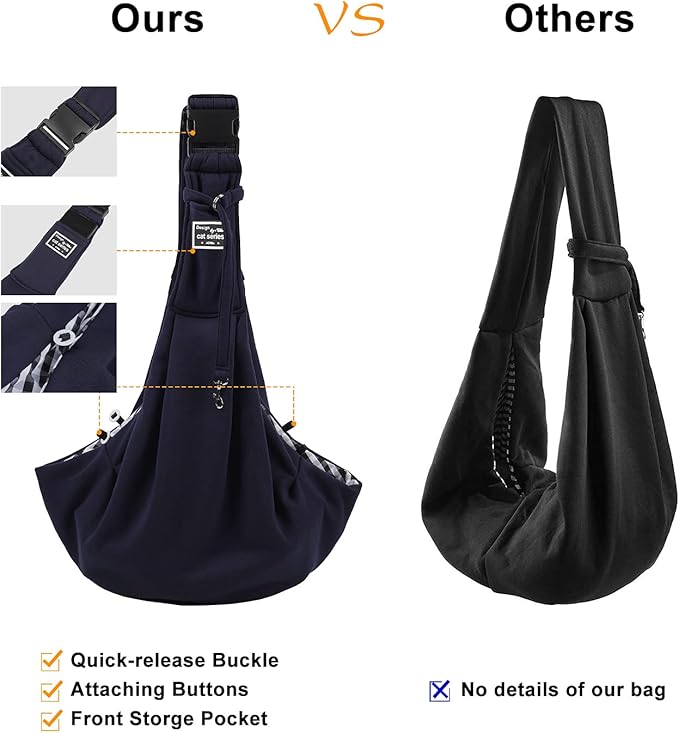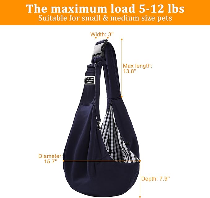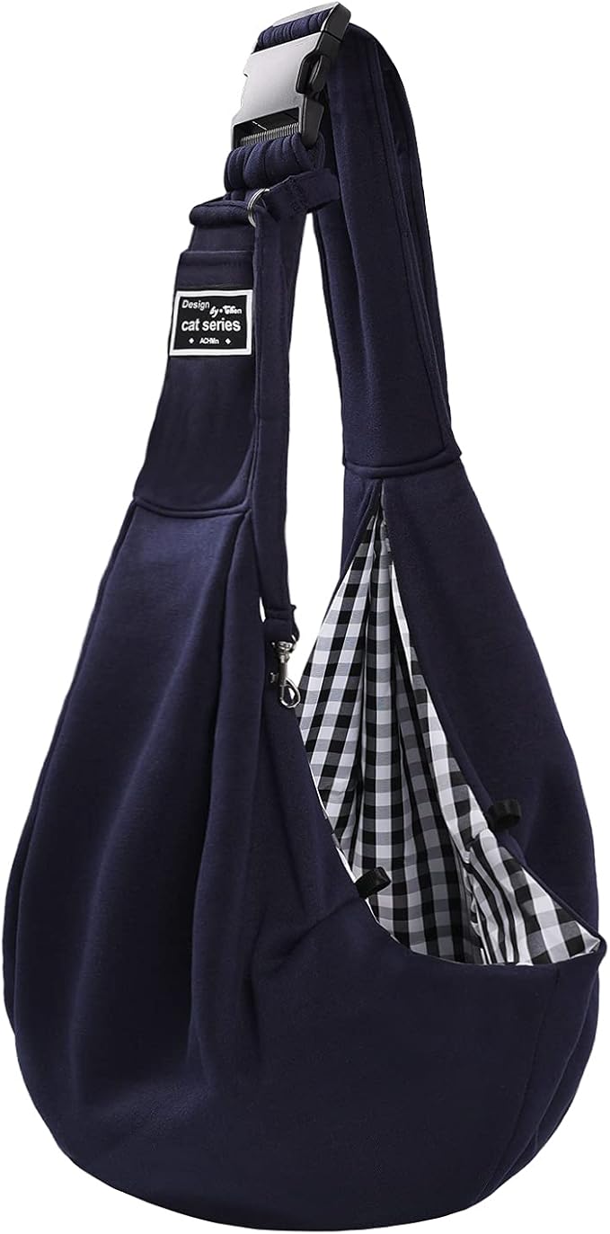 Surblue Dog Sling Carrier Bag with Hands Free Reversible Belts,Safe Comfortable Adjustable Crossbody Shoulder Outdoor Travel Pet Tote Suitable for Small Pet Cat Puppy up to 12 lb (Buckle Darkblue)