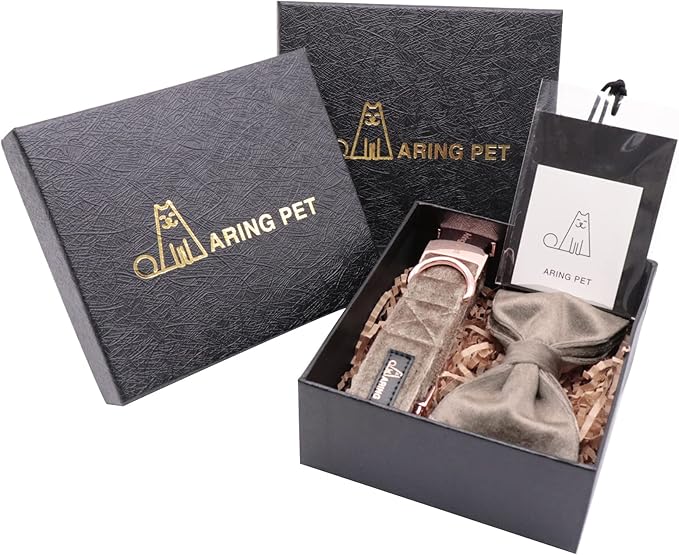 ARING PET Bowtie Dog Collar,Velvet Dog Collars with Detachable Bowtie, Adjustable Bow Tie Collar for Girl and Boy Dogs.