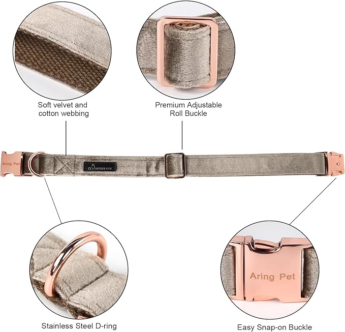 - <p><b>[ PREMIUM MATERIAL ]</b>The collar is made of <b>velvet</b>,extremely <b>soft</b> and <b>comfortable</b>, which will not harm your dog's skin. Velvet fabric is very textured and it's <b>colorfast</b>. At the same time, the inner webbing enhances the <b>durability </b>of the collar.</p>