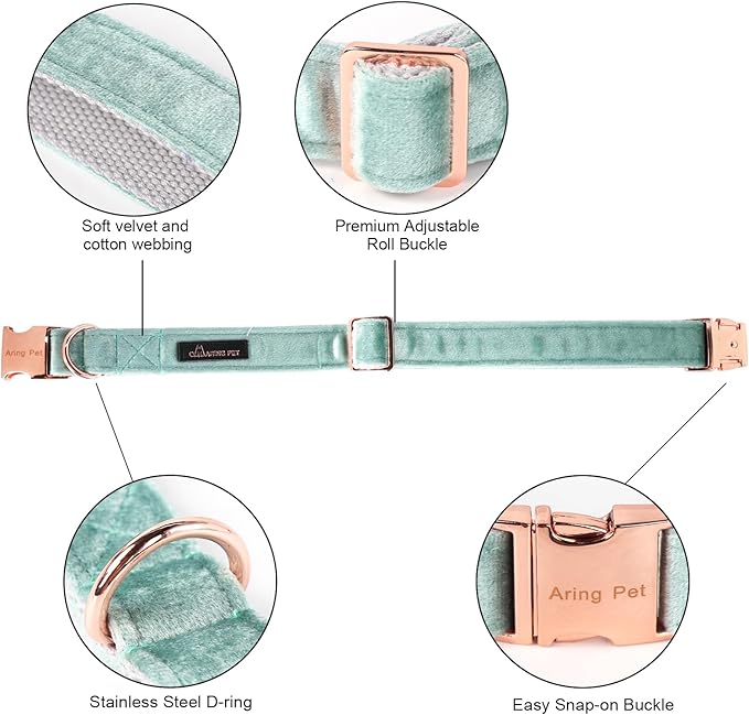 - <p><b>[ PREMIUM MATERIAL ]</b>The collar is made of <b>velvet</b>,extremely <b>soft</b> and <b>comfortable</b>, which will not harm your dog's skin. Velvet fabric is very textured and it's <b>colorfast</b>. At the same time, the inner webbing enhances the <b>durability </b>of the collar.</p>