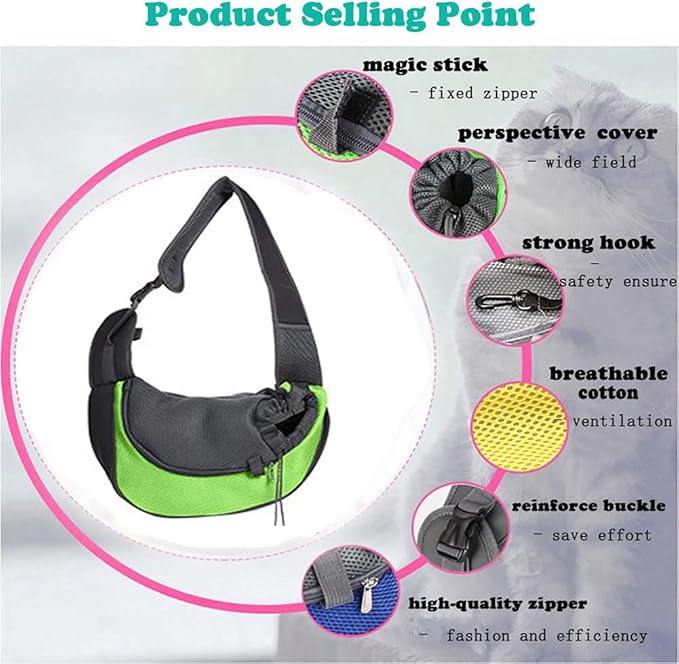 - 【Safe and Convenient】A safety buckle on the inside of the pet sling carrier (it can be connected to a collar) to prevent pets from jumping out. Magic sticker prevents the zipper from slipping and effectively increases safety. The firm buckle design on the shoulder strap is convenient to use and prevents the bag from being disconnected during use.