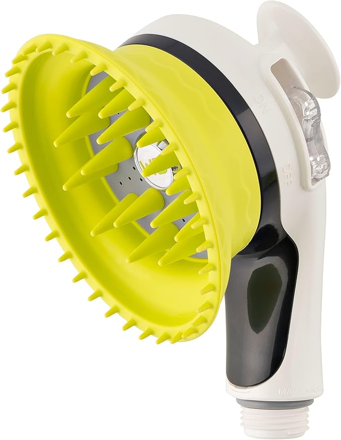 WD Handheld Shower Brush with On/Off Switch | Shield Water While Brushing and Washing Simultaneously | Dog Washing Shower Attachment