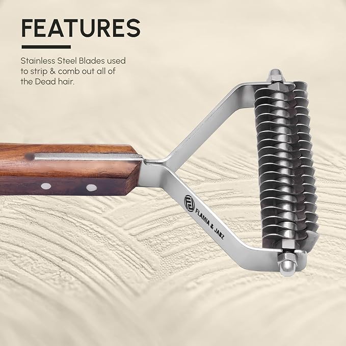 Flamia & Jabz Undercoat Rake for Dogs & Cats, Dematting Grooming Stripper Tool (18 Blades)