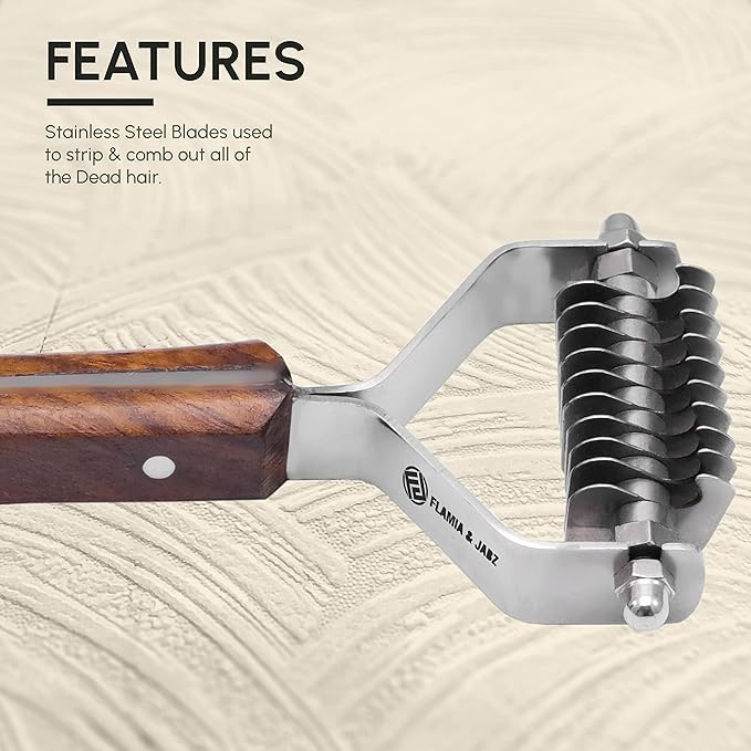 Flamia & Jabz Undercoat Rake for Dogs & Cats, Dematting Grooming Stripper Tool (10 Blades)