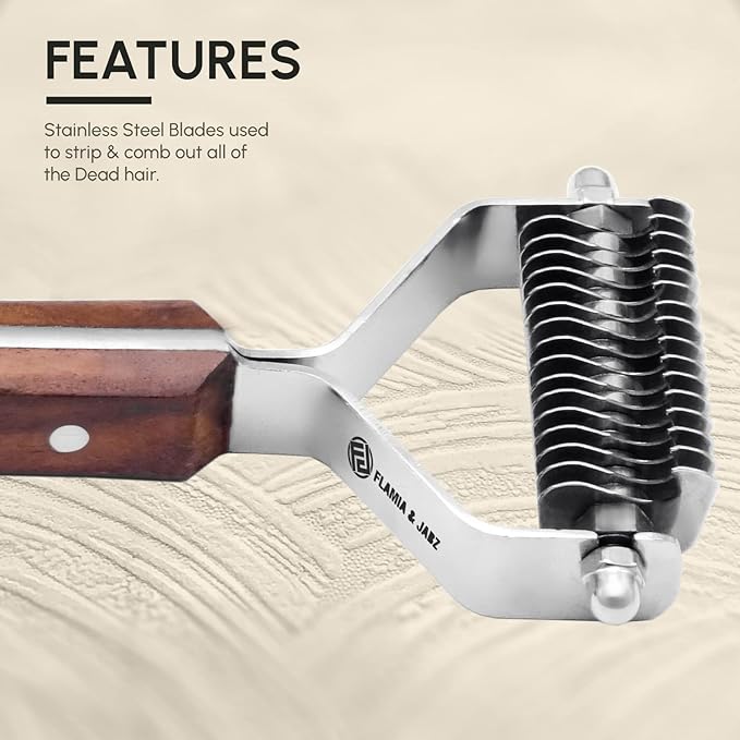 Flamia & Jabz Undercoat Rake for Dogs & Cats, Dematting Grooming Stripper Tool (16 Blades)
