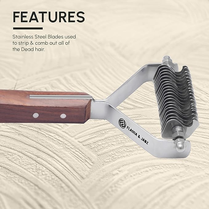 Flamia & Jabz Undercoat Rake for Dogs & Cats, Dematting Grooming Stripper Tool (20 Blades)